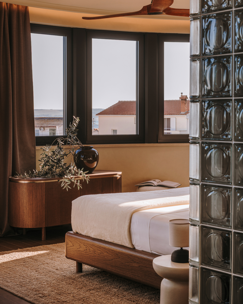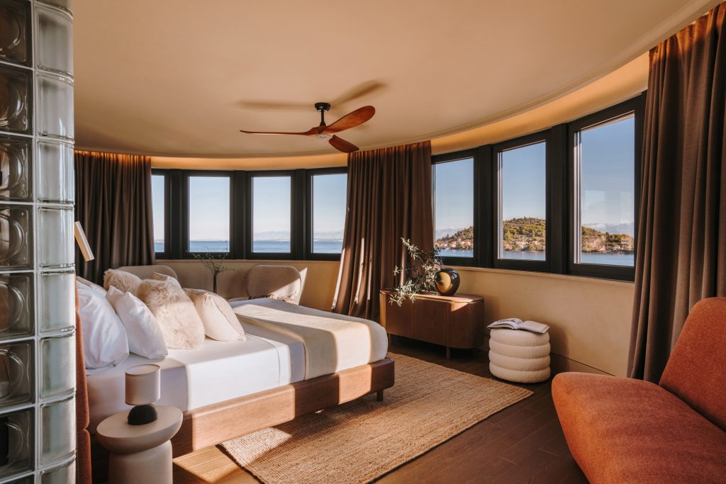 This is where understated luxury meets authentic island charm. With panoramic windows or a private terrace, the King Size Superior Room offers sweeping views of the Adriatic and the sound of waves to lull you to sleep. The interiors are airy and elegant, with a king-size bed, plush seating area, and carefully curated details that reflect the colours and textures of Ugljan.